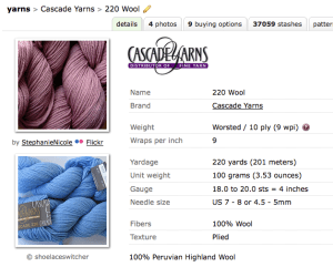 I find this one particularly useful because you can look up every type of yarn and see how it should be cared for, washed, what size needles to use etc. Great for those of us who can’t tell just from looking at it. You can even make your own “notebook” which is like a collection of the projects you have done, are doing or would like to do. It is kind of like your online knitting central station! I’m looking forward to spending more time there!