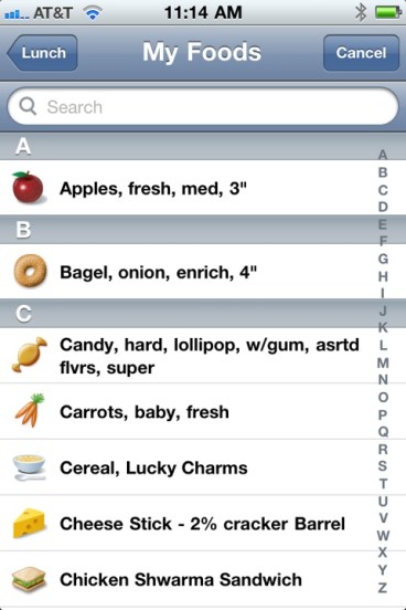 This is a screenshot of your list of custom foods or foods that you have used, so you can easily pick from them again and again. It is SO fast!