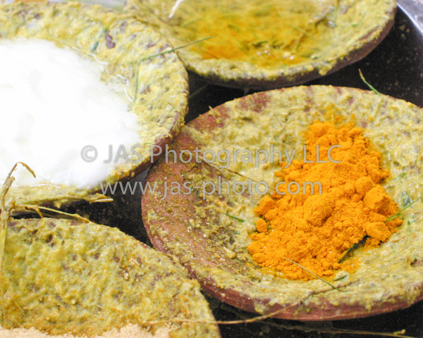 This is a thali (plate) of 4 ceramic bowls with different herbs/spices in them (turmeric, yogurt, henna, oil) used to “beautify” brides before their wedding. This was the morning of my sister’s wedding almost a decade ago! Taken on my now almost archaic (but still ticking!) canon powershot. My FIRST digital camera.