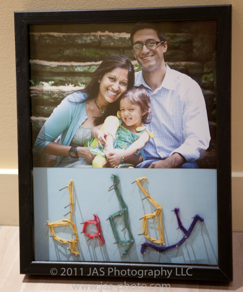 9. Once all the yarn was in place, I put my printed family picture at the top of the backing (used double sided table to secure) and then put it all into the shadow box frame, and I was done!