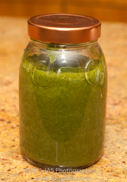 Throw everything into a blender and blend away! They key is to start of slowly, and then speed up. You may need to add a little bit of water so there is enough liquid to get the blender going. The rest of the liquid will come from the lemon juice – so just keep adding them to taste. The end taste of the chutney is supposed to be pretty tart. I think for the amount of cilantro and mint I wrote above, I would probably use about 1/4 cup lemon juice and a fair amount of black salt.