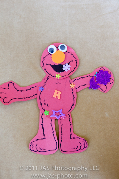 Sadly I can’t remember where I got this idea from, but I made a “Build Your Own Elmo” activity for the party.
