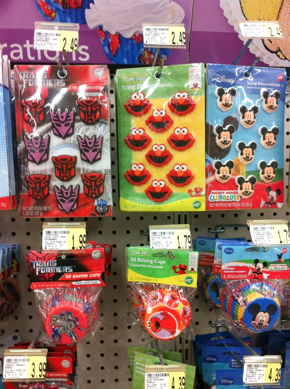 Elmo cupcake toppers and liners available at michaels and ac moore. The baking pan for the elmo cake is available at those stores as well.