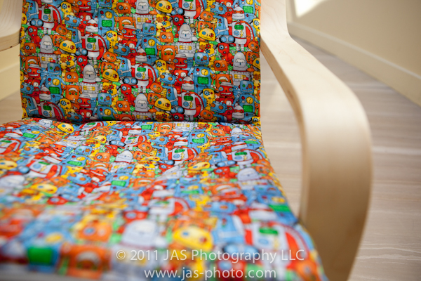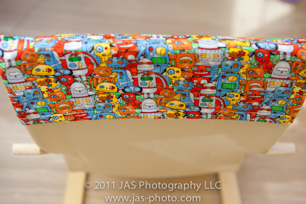 Unfortunately, the chair for kids is not very stylish!  Unlike the big people chairs that come with lots of fabric options, the toddler chair comes with just this plain off-white option.
