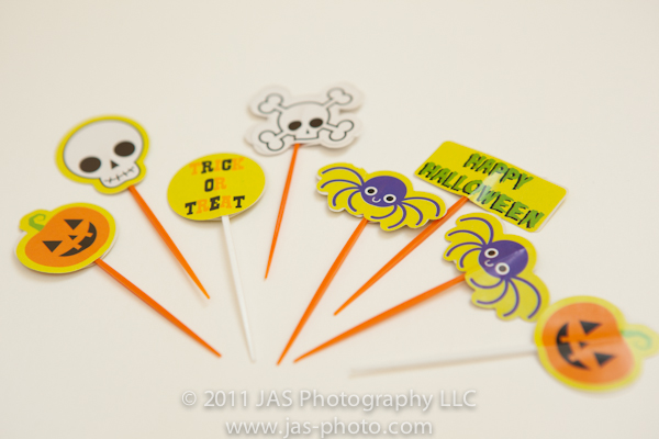 And for these halloween toppers, I used stickers from a $1 book of halloween stickers that I got for my daughter at Target. It was awesome!
