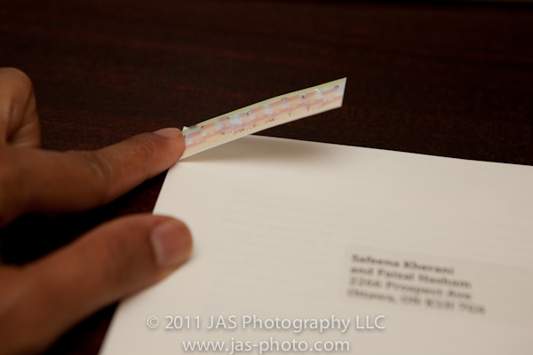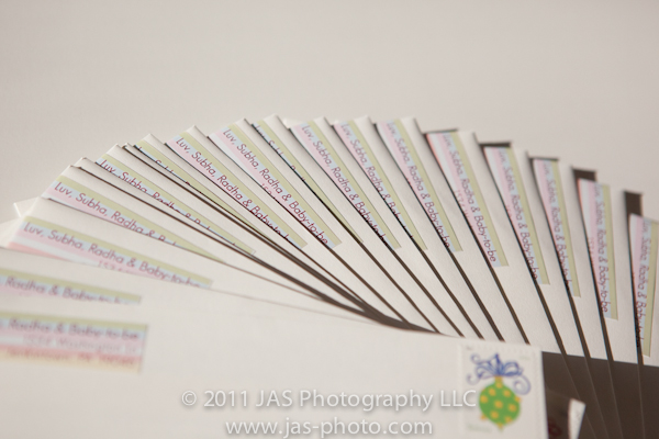 5) To apply the labels straight, I found it easier to start on the back of the envelope, and line up the longer part of the label with the top of the envelope.