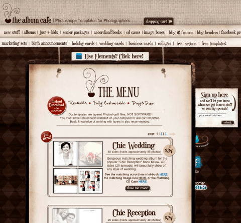 Where you can buy and immediately download entire album templates. Most of these are geared towards professional photographers who need to make albums for weddings, or senior photos etc, but I found that I like their templates and you can edit them as much as you want!