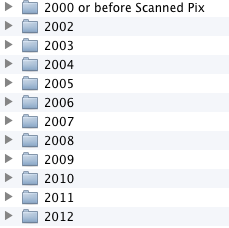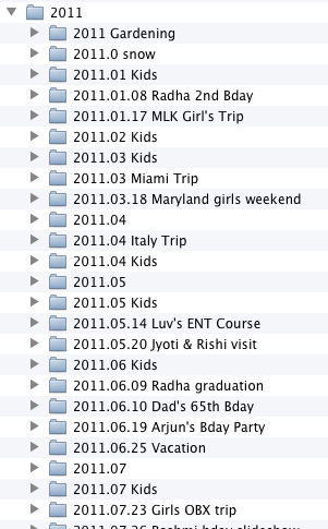 Also, I keep a folder for each month labeled “kids” where I put misc pictures that I’ve taken of either my or my friend’s little ones, as well as a generic month folder labeled just with the year and month for misc pictures I take for fun. Lastly, I keep a Misc folder for the year (2012 Misc) for other screen shots or pictures that I’m not sure where to file.