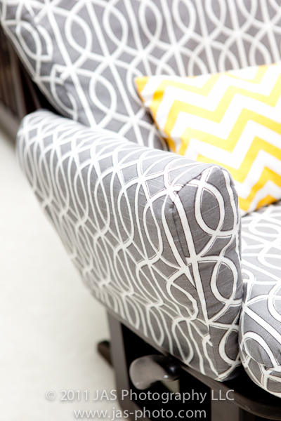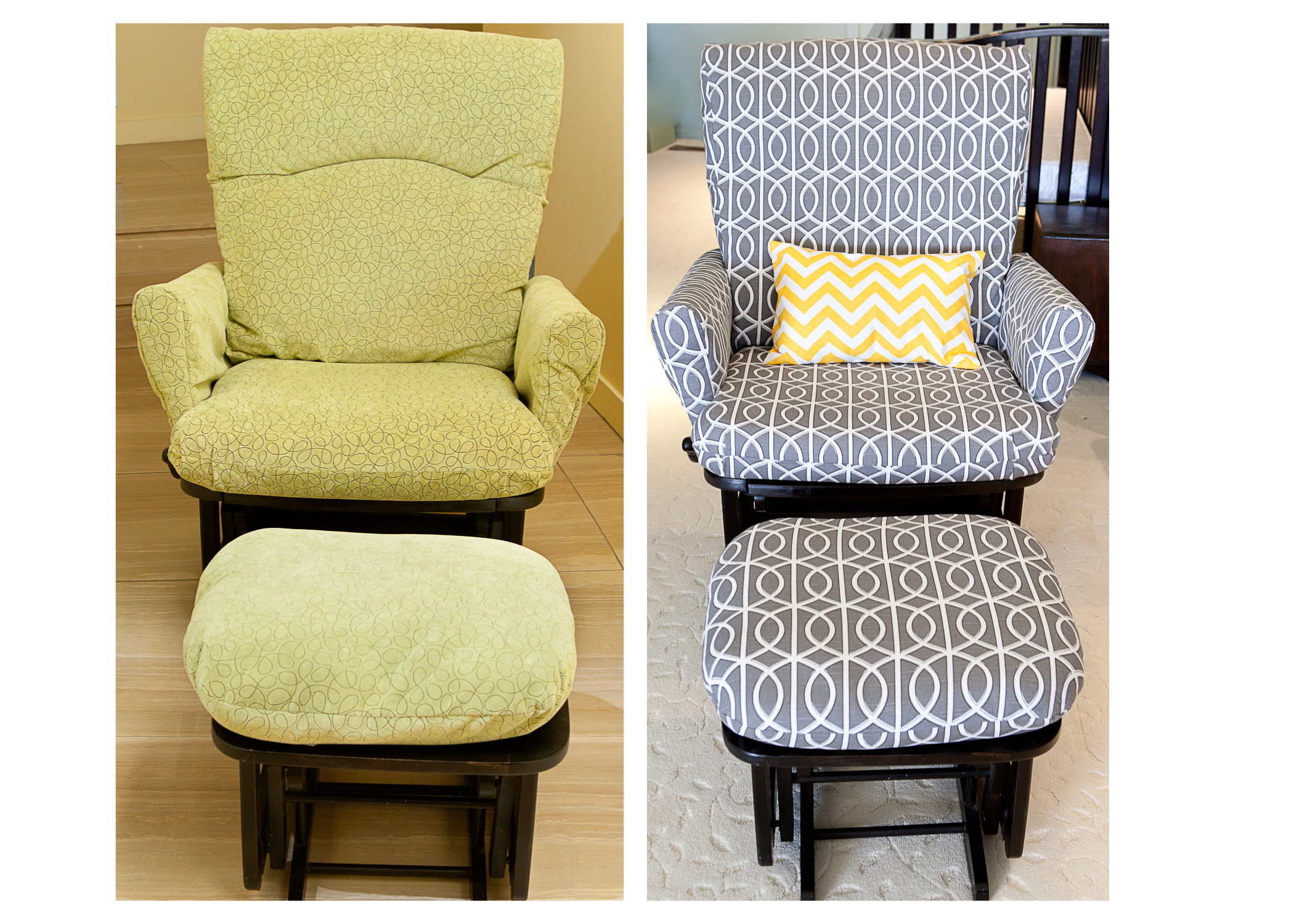 glider reupholstry project for gray and yellow nursery