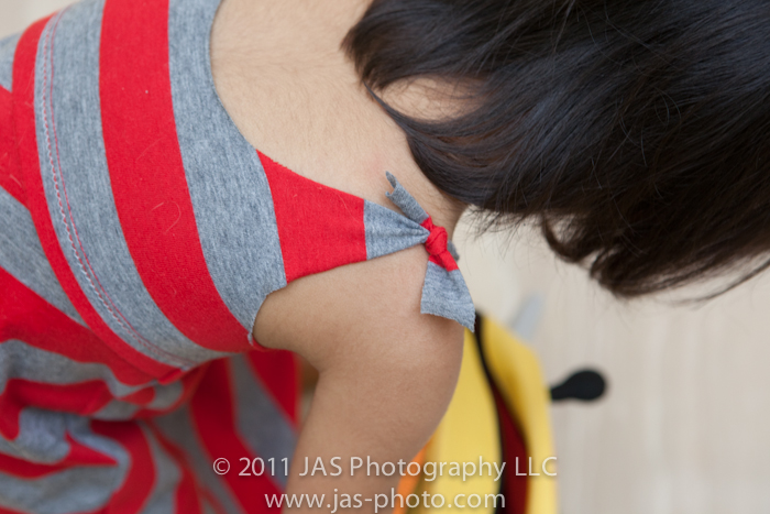I finally had a chance to do my first post partum sewing project: a toddler dress made from an XL t-shirt I bought on clearance at Old Navy (gotta love those sales!  The t-shirt cost <$4!)