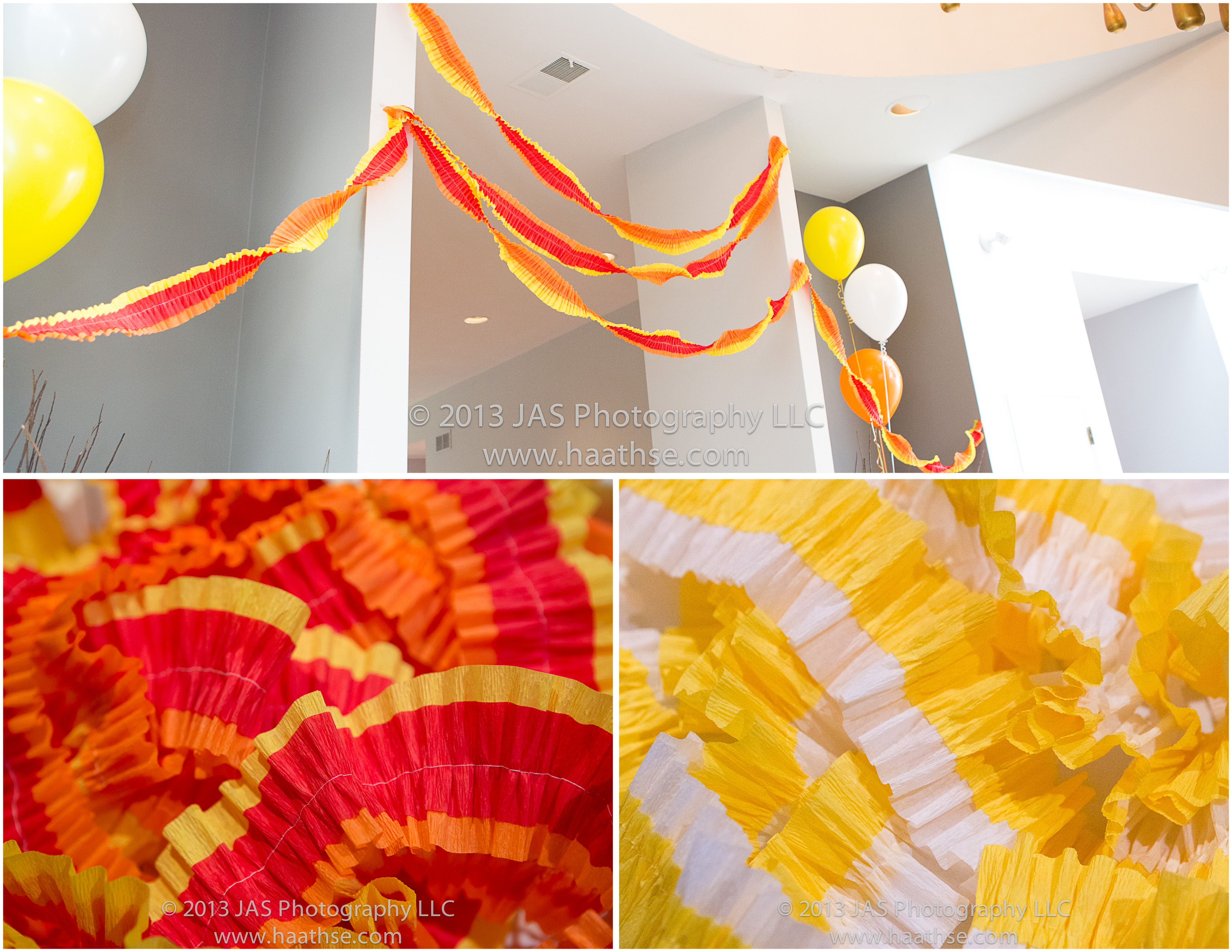 For the decorations during the party, I made some fun, multi-colored streamers per Dana Made It’s directions: