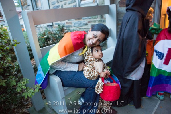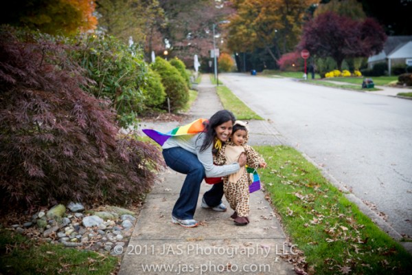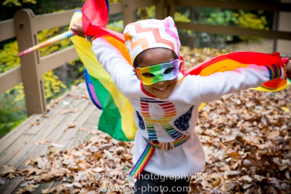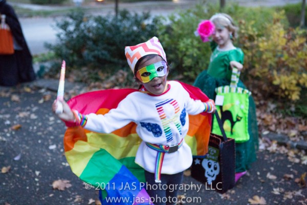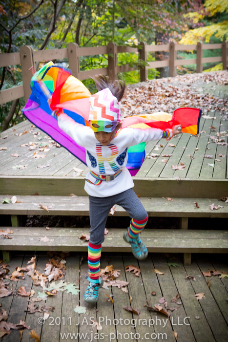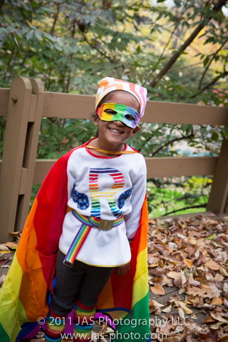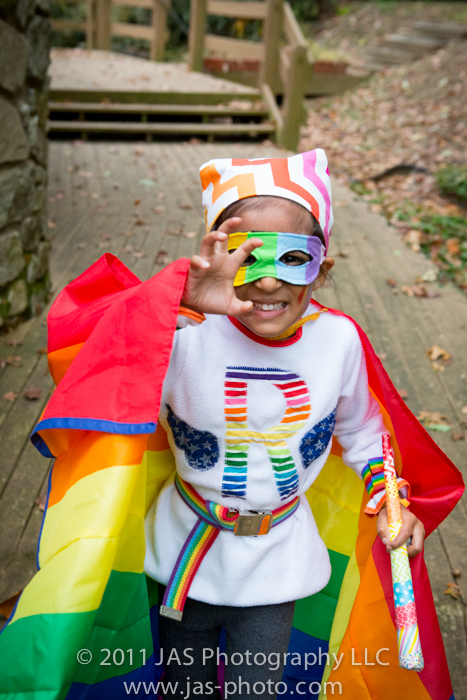 Radha said she wanted to be a Super hero for halloween. Then we both had the same idea at the same time, to make her a Rainbow superhero, since she is currently OBSESSED with rainbows. So she was: