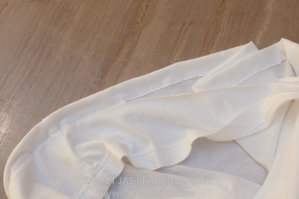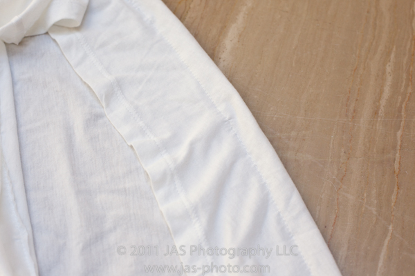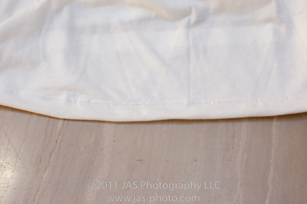 For this one, however, I had a little bit of fun. I made several rows of pintuck seams along the bottom of the shirt. This way I kept the original hem, shortened the shirt, and made a cool pattern along the bottom. plus, the extra sewing along the bottom of the shirt made it stretch out a bit, which accommodates my hips better.