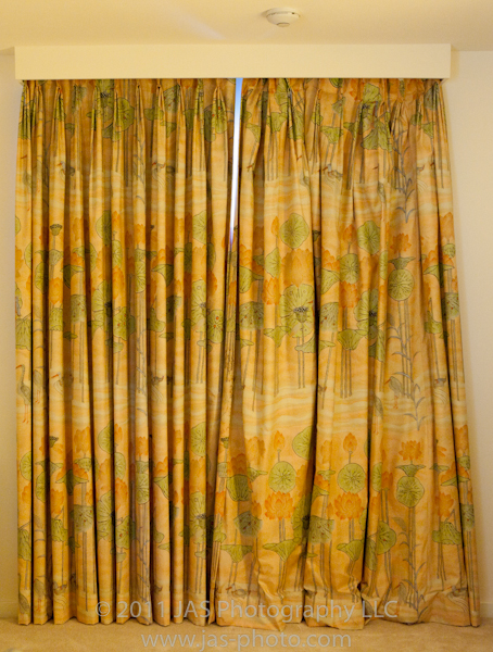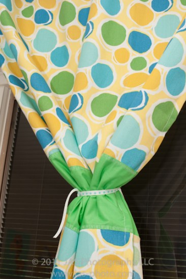I didn’t have enough fabric to make the correct length of the drapes, so I used a matching solid color to make a strip in the middle.